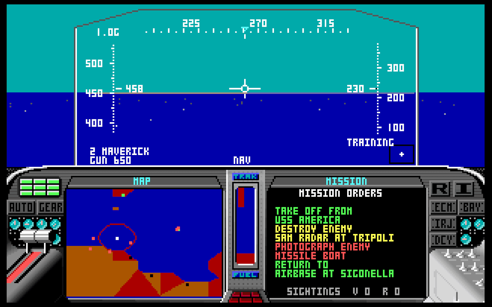 Although the 16-bit game might provide unrealistic amount of data to the player, I believe this is for the benefit of the game and the simulation. Microprose did wisely to make more of the battlefield visible instead of limiting the scope strictly to the pilot's seat. You get a sort of sectional view of warfare, which is certainly very instructive and makes for a more interesting game.